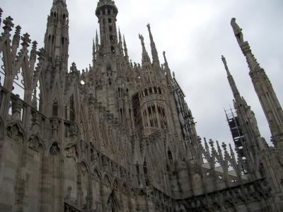 奥行き148m、幅91m、高さ109mイタリア・ゴシックの代表的建造物である大聖堂で、天に伸びる135本の小塔と2245体の彫像で飾られた外観は息を飲む素晴らしさで圧倒された。