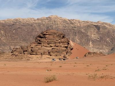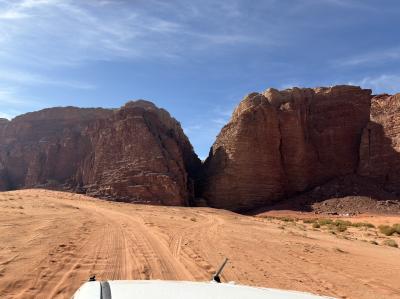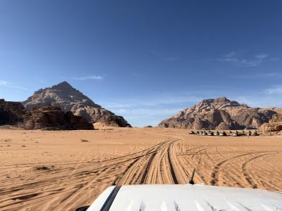 別のトラックが轍か砂が盛り上がった場所を減速せず走行したせいで、荷台に...