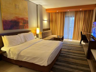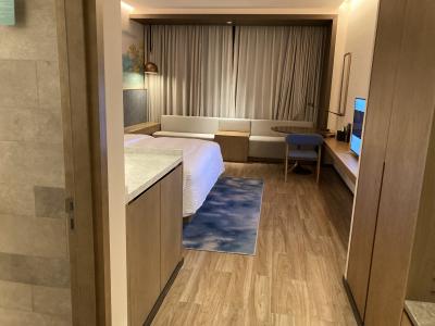 部屋も広々していて清潔です。冷蔵庫もありましたがあんまり冷えませんでした。1.5リットルのペットボトルが付いていました。wifiもありました。- 旅行時期