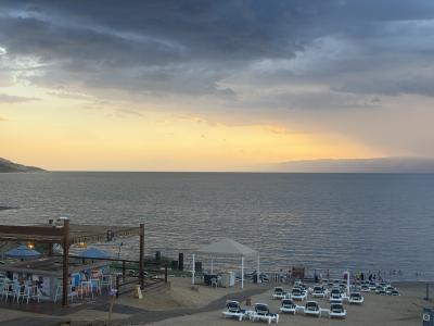 死海のプライベートビーチまでは徒歩5分ほど。時期か時間的かわかりませんが、人も少なく楽しめました。