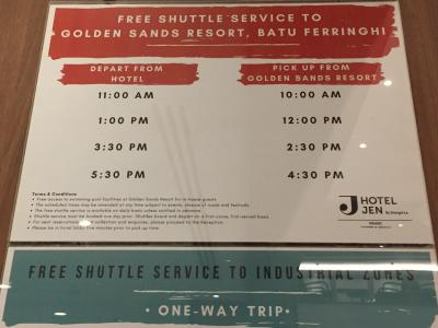 ホテルジェンペナンとゴールデンサンズ間のシャトルバスを利用しました。大型バスでとても快適でした。前日予約せずとも当日の朝の予約でも乗ることができました。