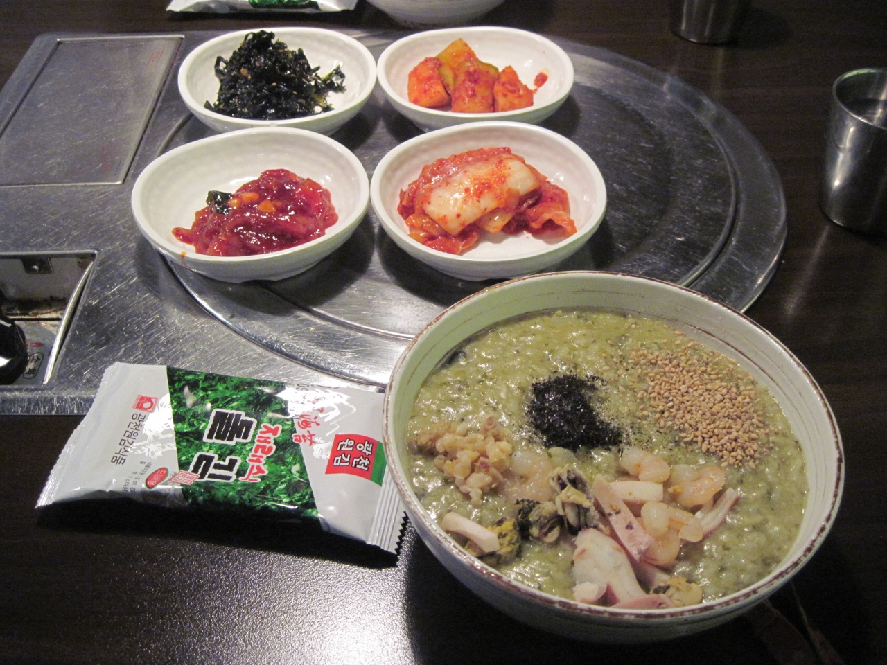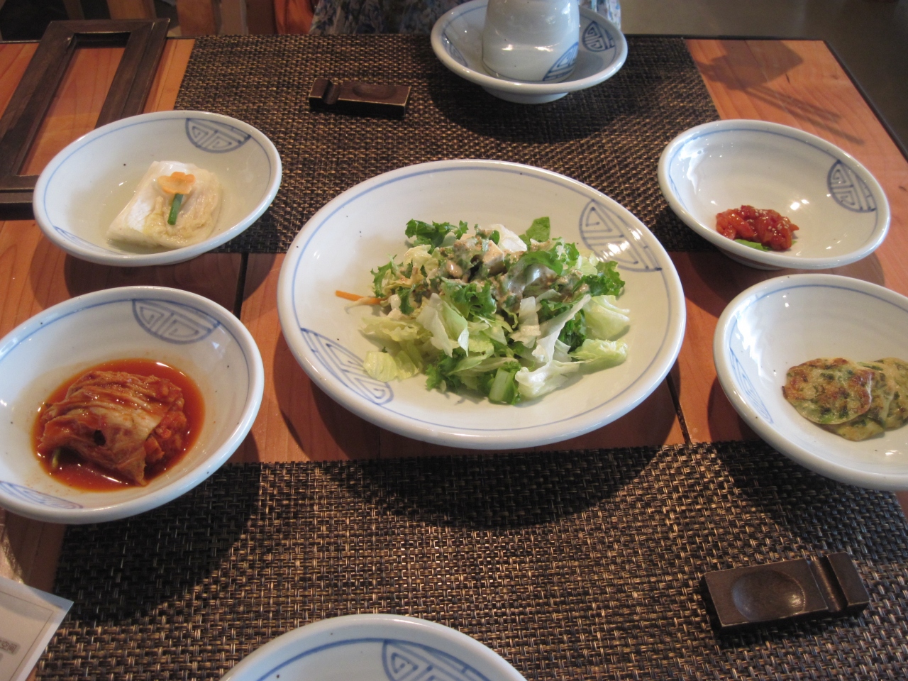 店内に芸能人の写真が多く飾られていました。オーナーの人脈がうかがわれます。価格は明洞内なら相応 おかずも多く、韓国のりが付いてきたのは嬉しかったですね