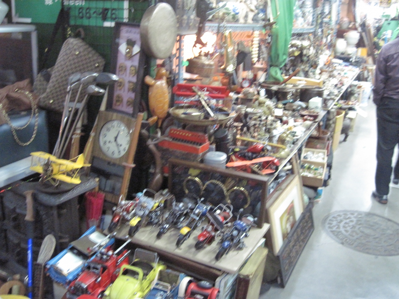 2階建ての広いフロアに所狭しとお店が並んでいます、商品は明らかに使用不能な電化製品、錆びた腕時計、色の変わったメガネフレーム 時間と交通費を使ってまで行く必要はないと思います、ただ骨董品の掘り出し物を探している方には楽しい場所でしょうね