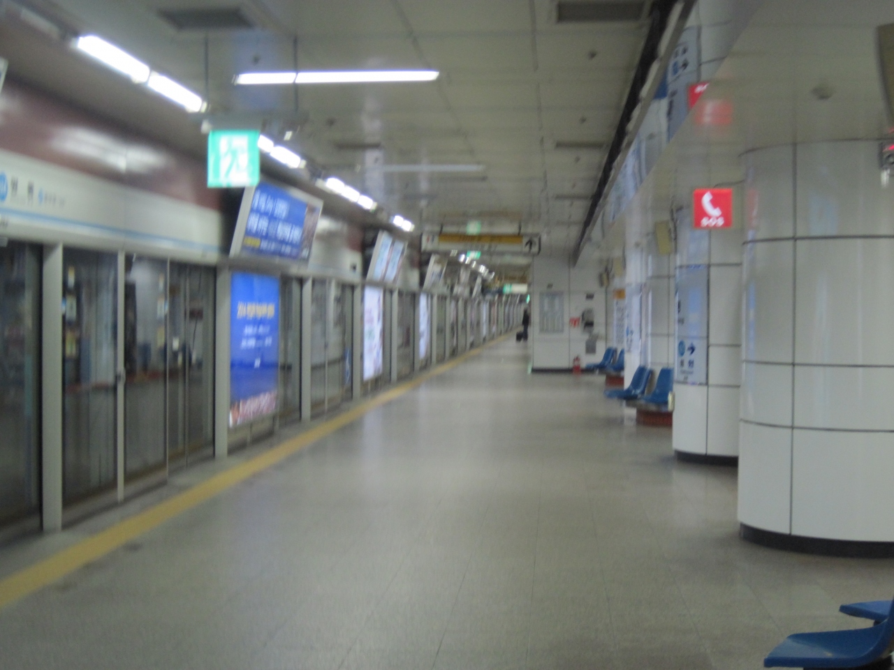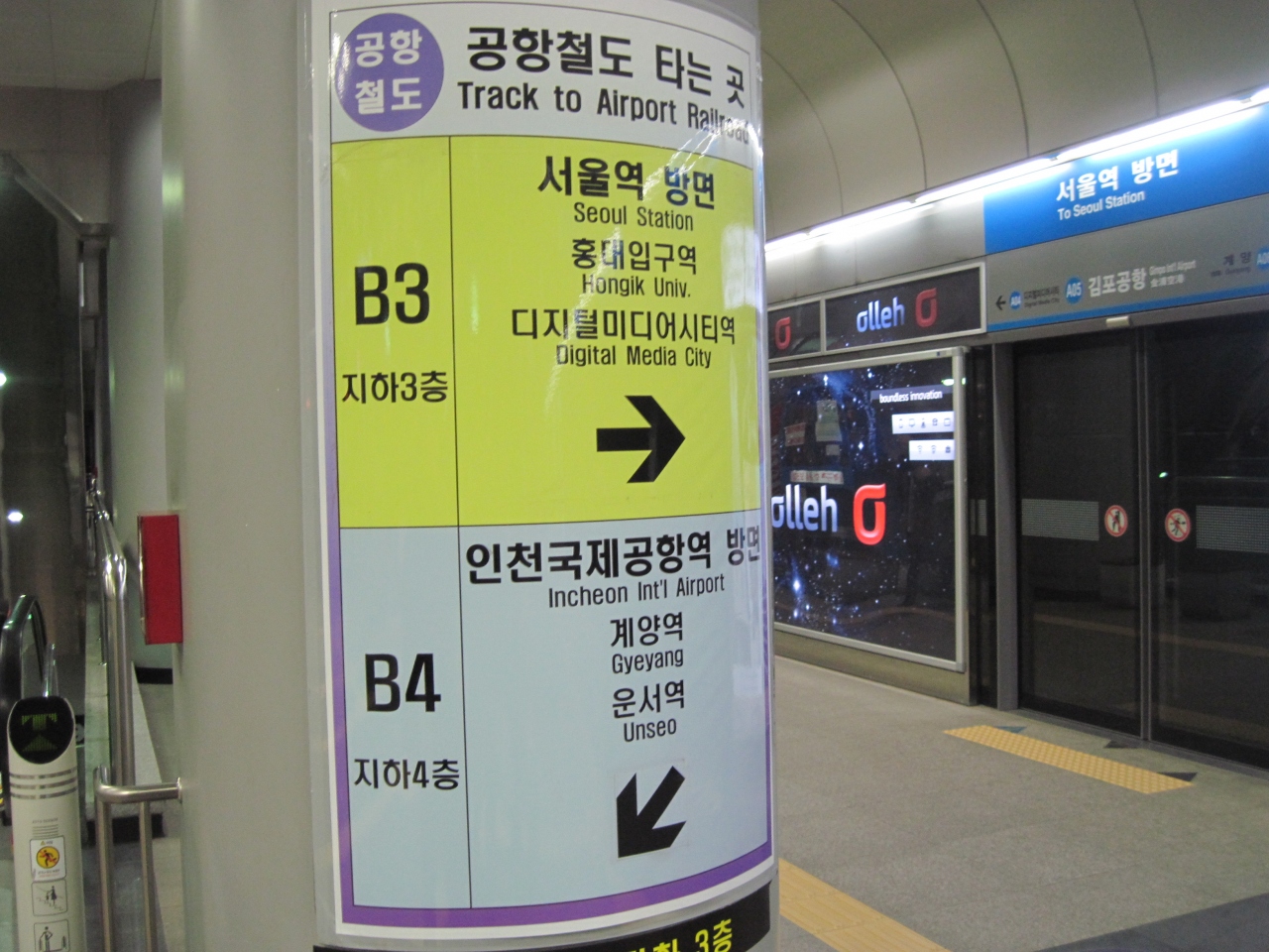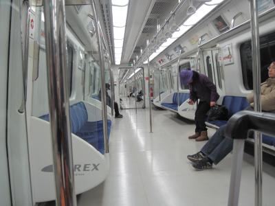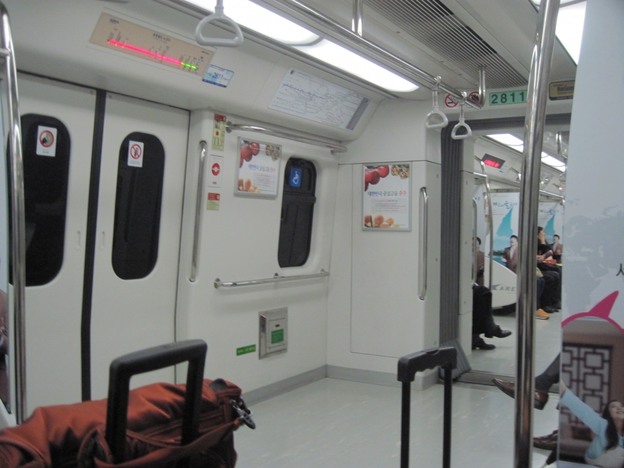 金浦空港からですとソウル駅まで約30分 明洞まで地下鉄を乗り継ぎましたが1350w位わずか110円で移動できます。渋滞の心配もなく比較的車内は空いています。大きなスーツケースを持っていても大丈夫でした、ただ通勤時間帯のみ大変混雑しますのでご注意ください、またソウル駅で地下鉄1号線や4号線に乗り換えは移動距離があります