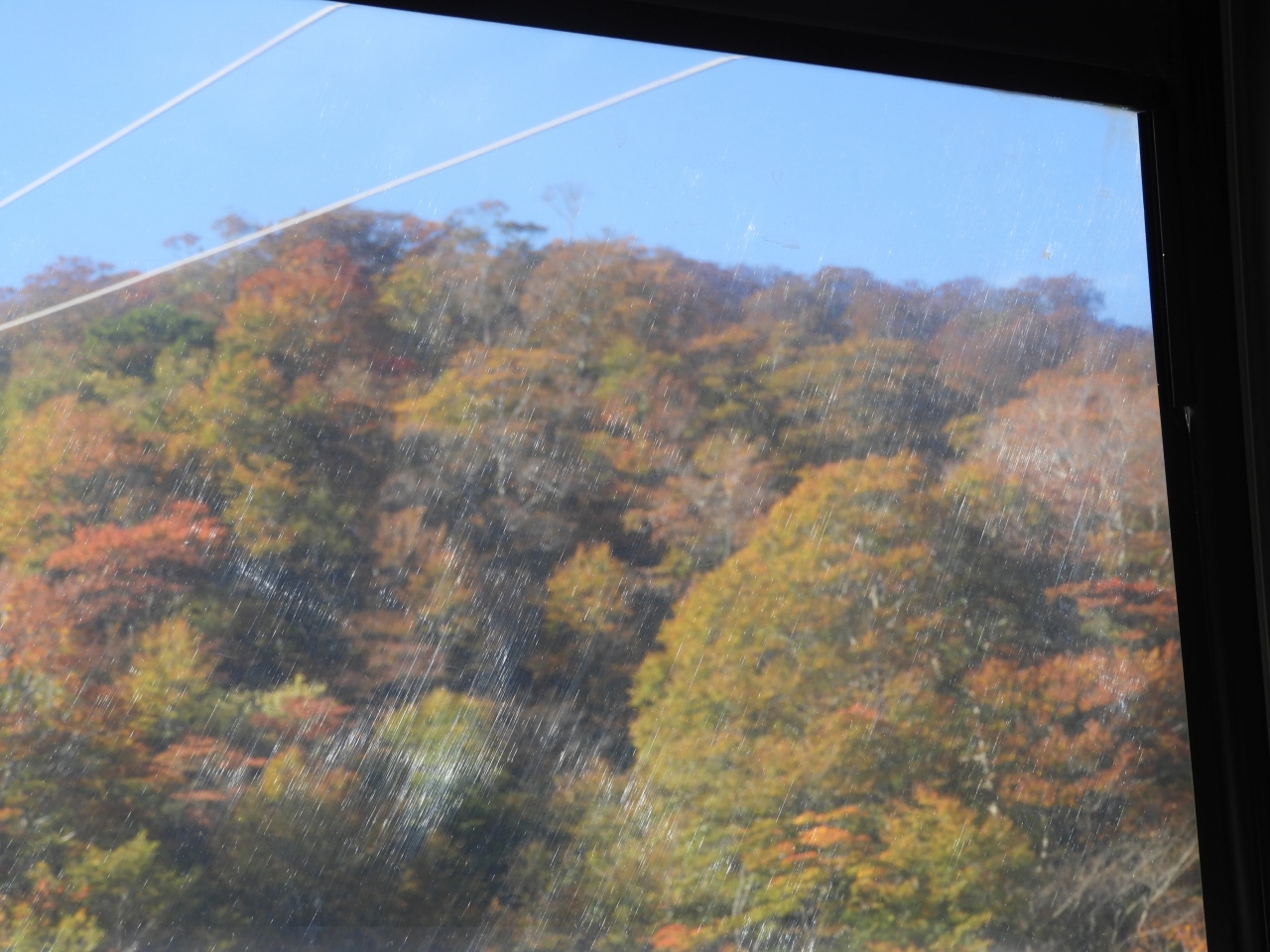麓の土合口駅(746m)付近の木々はまだ色づいていませんが、ゴンドラが上昇するにつれて、周囲の山麓は次第に紅葉が見られる様になりました。