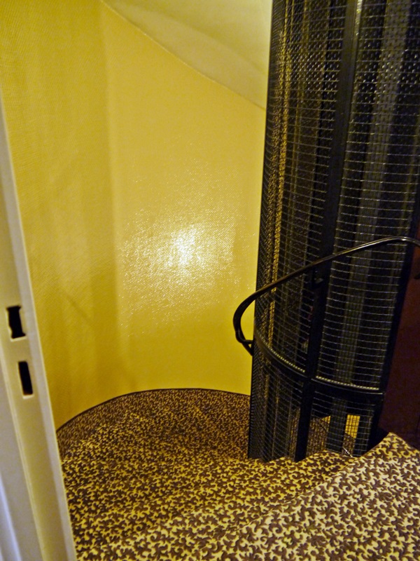 らせん階段の真ん中に昔ながらのエレベーターがついていました。