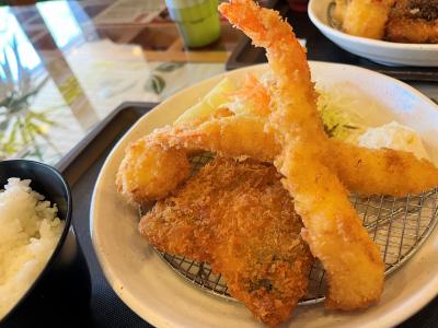 此処のミックスフライ定食特にアジフライが美味しい1200円/人