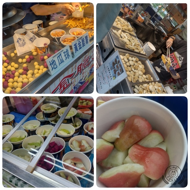 野球場の外に台湾ならではの軽食(さつまいもボール、バーワン、フルーツなど)が売っていました。