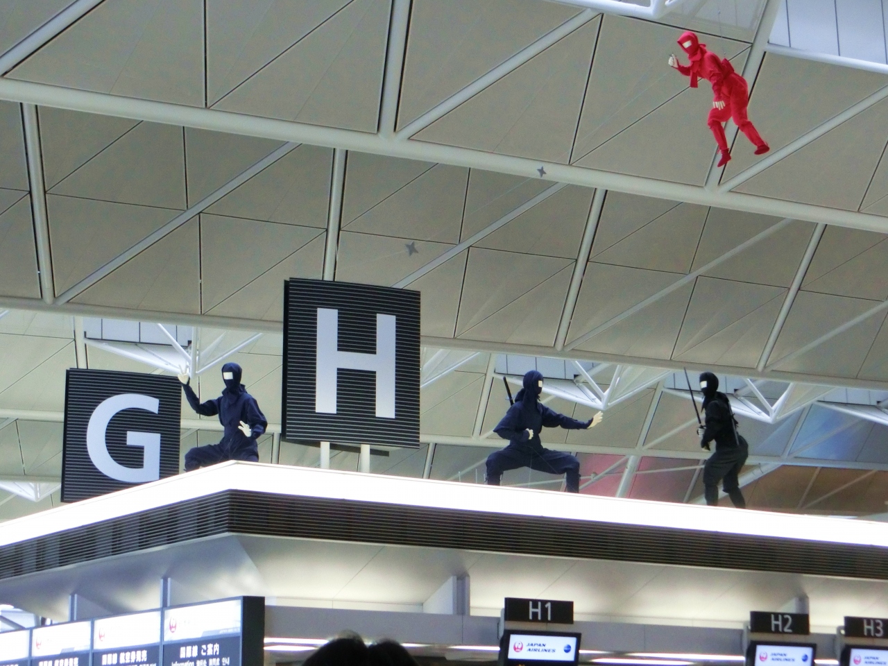 空港内のカウンター上の空きスペースに、忍者などアピールしたいものがディスプレイされていて、なかなか良かったです。- 旅行時期