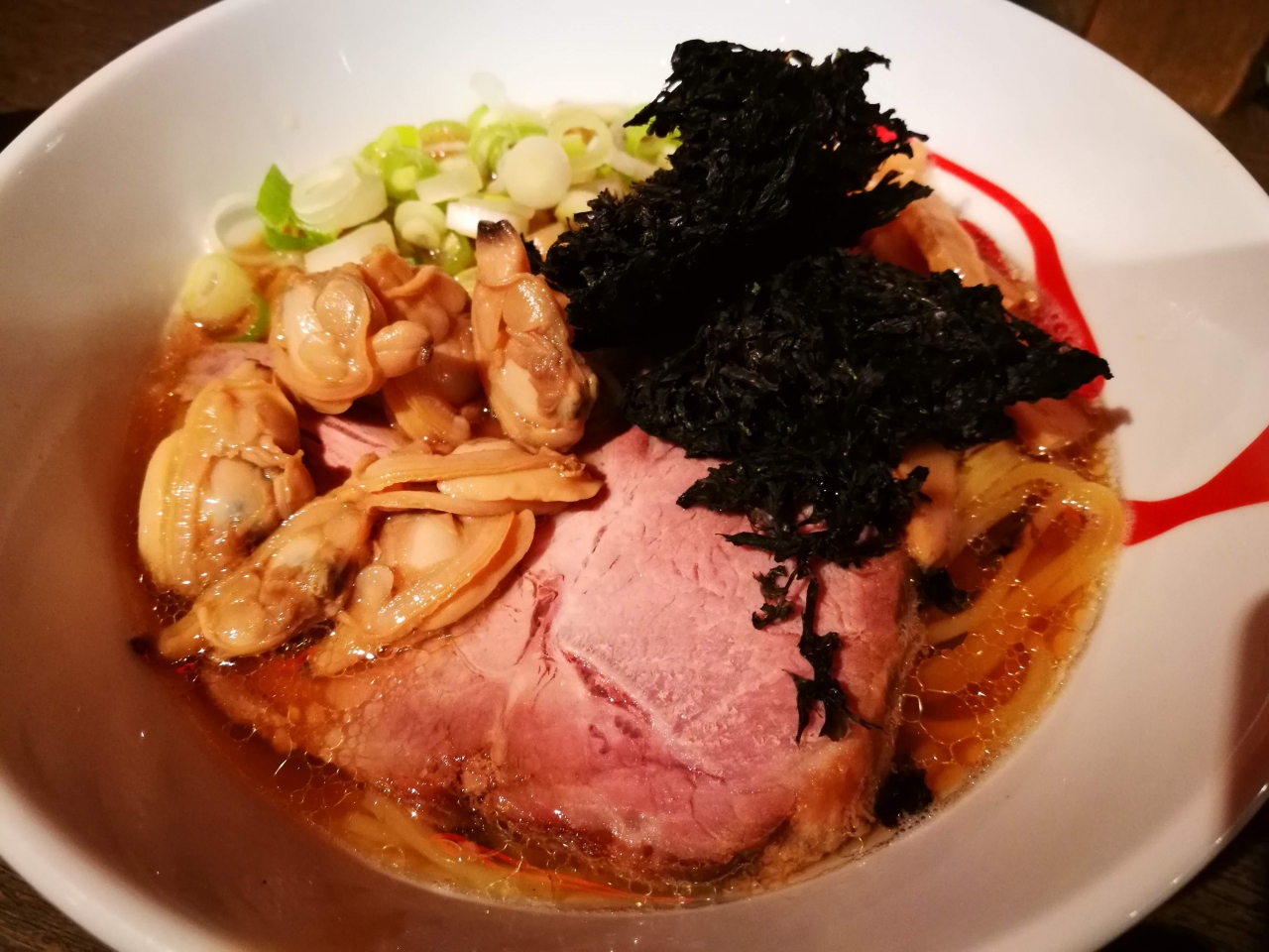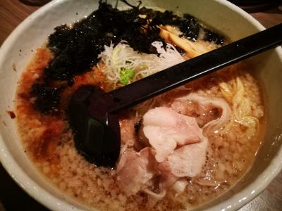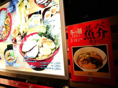 札幌らーめん共和国店(エスタ)はどこもたくさんの人出で空き席確保が大変であった。何回か回っていると運よくらーめん初代の席が空いたため迷わず入店。限定の「ぜいたく魚介仕立て」をいただく。おそらく煮干しベースと思われるスープが絶品。魚介系はさっぱりしていて最高です。