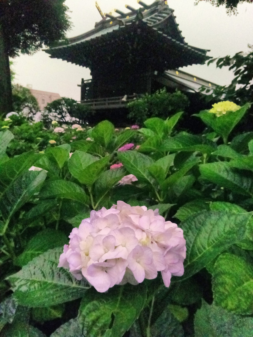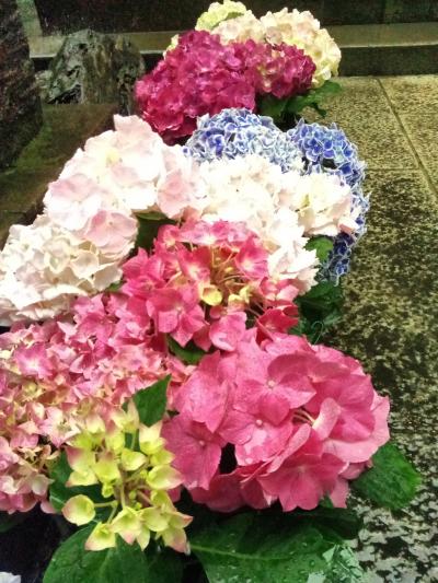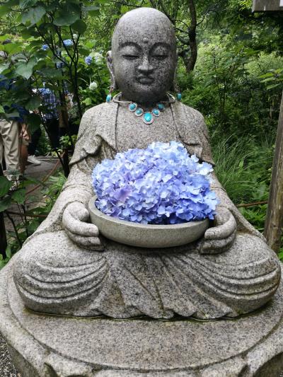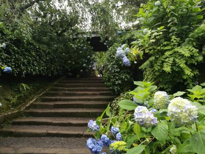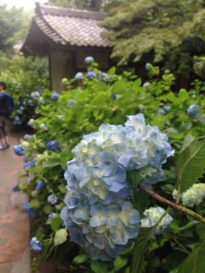 青色の日本古来の「姫アジサイ」が境内に約2000株以上植えられ、ブルー一色に彩ることか「明月院ブルー」と呼ばれる。例年、一番の見頃時期は6月の中旬から下旬にかけて。この時期になると、拝観料窓口入り口前に長蛇の列が発生する。平日の朝早くの拝観がお勧め。