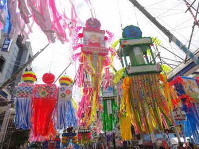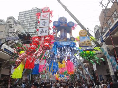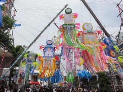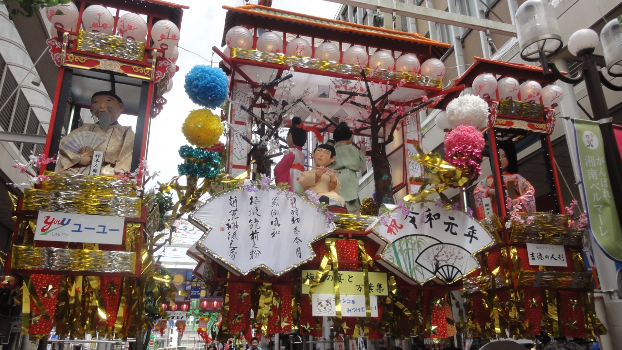 日本一の高さといわれている竹飾りがメイン会場である”東海道本通り”にずらりと並ぶさまは圧巻。時期的に台風が接近し強い風が吹いてい場合など、巨大な竹飾りが激しく揺さぶられ大きく揺れているのがものすごい迫力。両脇は商店や露店が立ち並び様々な食べ物が手に入る。但し、あまりに人が多く、歩行者は通りのセンターラインを境に一方向にしか進めない。現地の案内に従う必要がある。