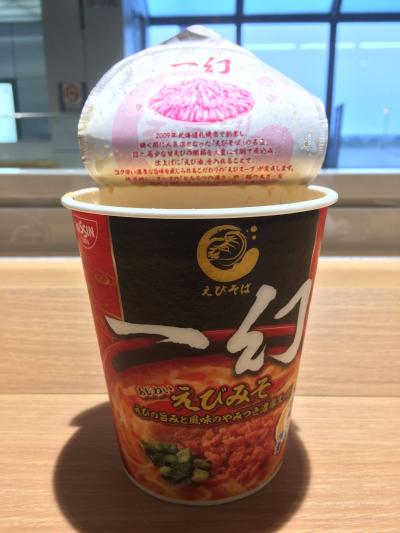 訪れる度に長い行列のため諦めていたえびそばだが、この日は運良く直ぐに席が確保でき、念願が叶った。海老風味スープの味が凄く気に入り、その後すくに出発ロビーの売店でカップ麺バージョンを購入。二杯目を頂くこになった。