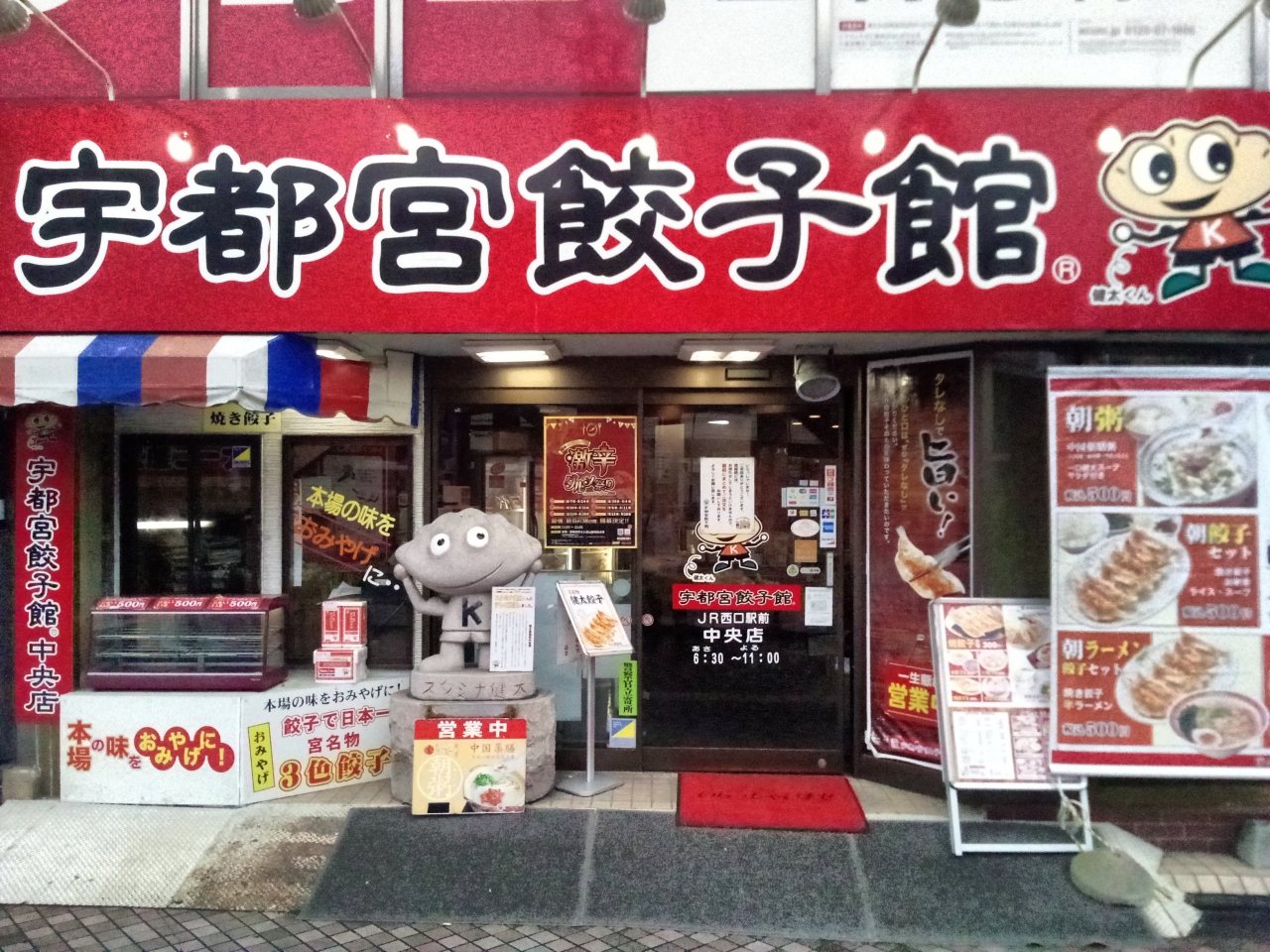 宇都宮餃子館では駅周辺の何店舗かで早朝から営業をしている。水餃子がセットになた薬膳粥定食と単品で焼き餃子を注文。朝から餃子三昧を決め込む。仕事に行く前にこうした餃子が食べられる宇都宮市民はとても恵まれているななぁ!