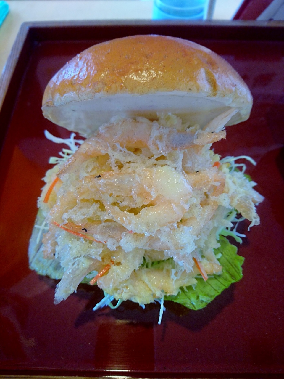 白エビかき揚と自家製タルタルソースの"白エビバーガー"や白海老の天ぷらがトッピングされた"白エビラーメン"など、富山湾でとれる話題の白エビメニューが食べられる道の。フードコートのセルフ形式で、量もそこそこのためバーガー&ラーメン両方どちらも食べて白エビ三昧しても全く問題なし。ここまで来たらぜひそうしなきゃ!!
