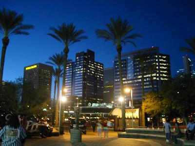 夜のダウンタウンです。ここはアメリカウエストアリーナ前。