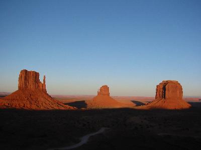モニュメントバレーの日の入りです。だんだん岩が赤くなってきました。