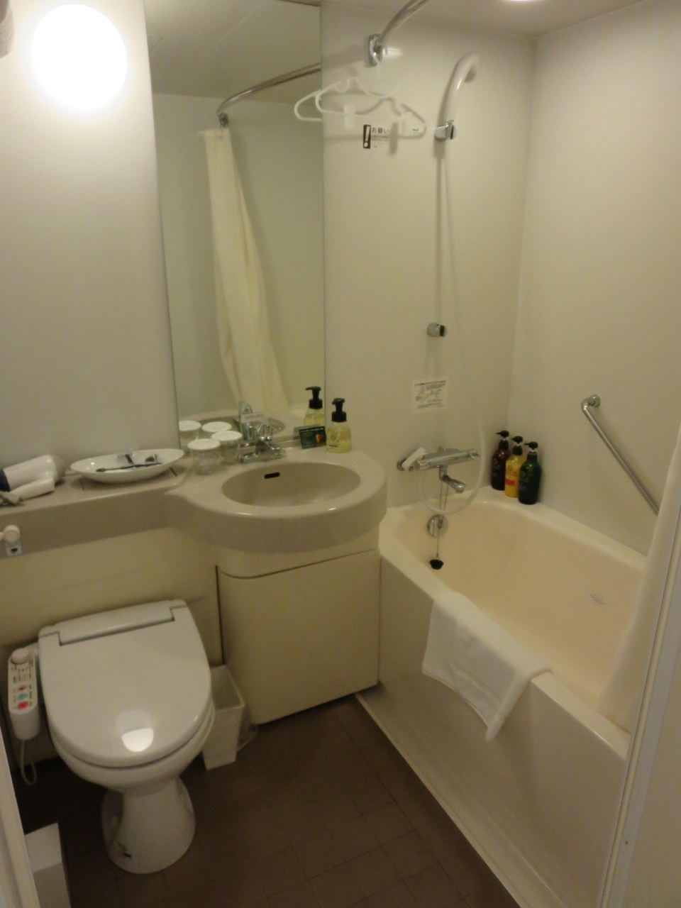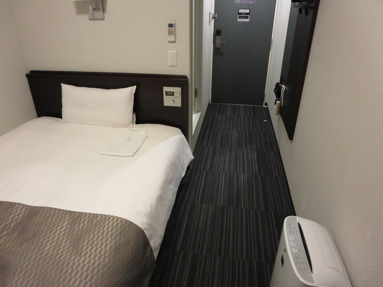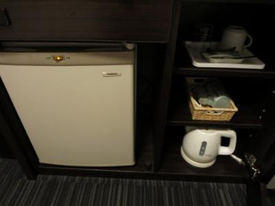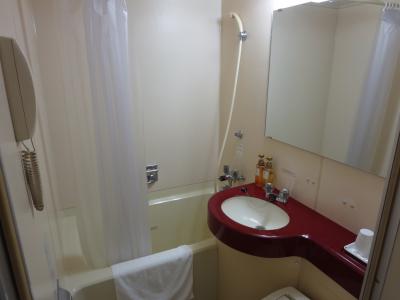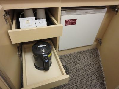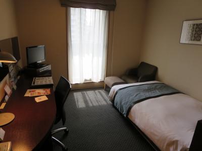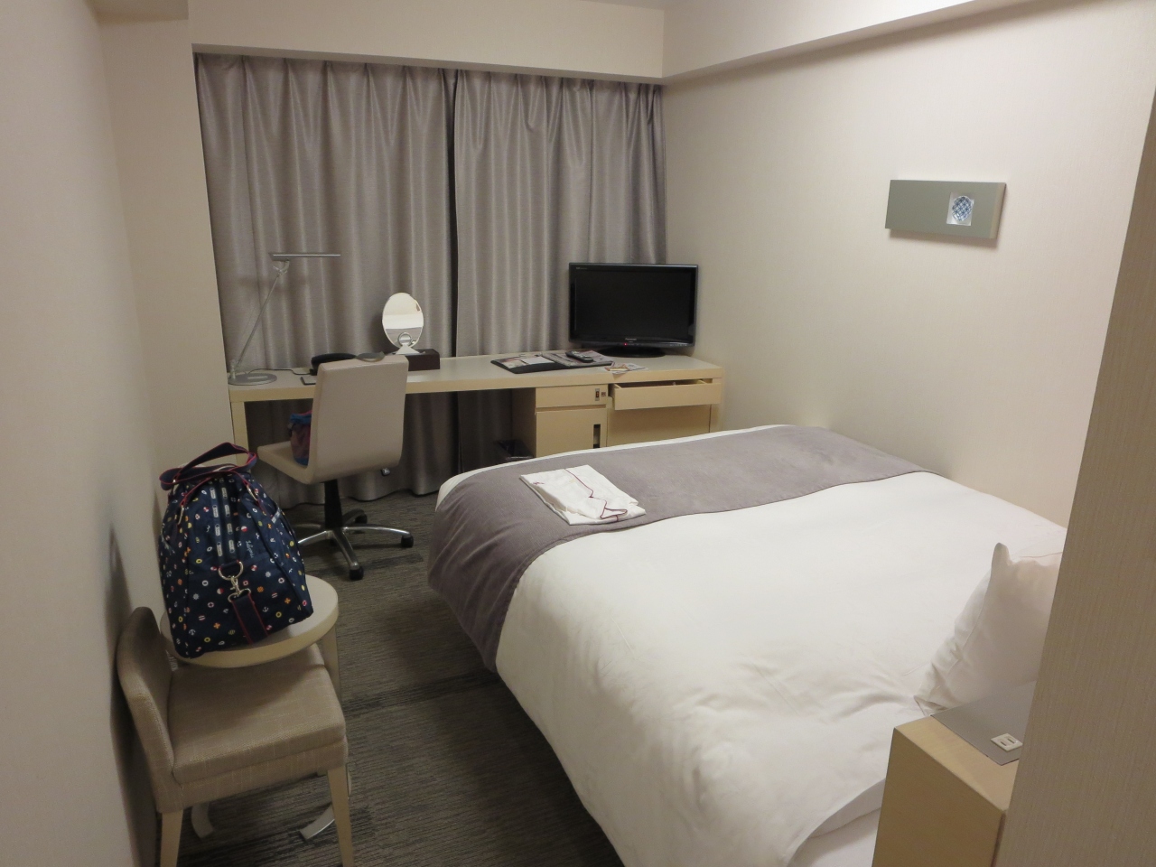 客室は広くはありませんが、清潔で機能的。TVも結構大画面。湯沸かしポット、空の冷蔵庫、ドライヤーの備付あり。荷物置きもあり。とても使いやすく特に不満な点はなし。