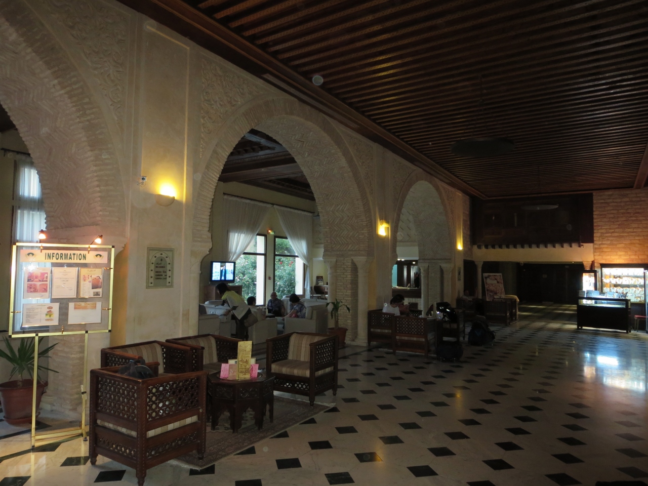 高層ホテルではなく、2階くらいまでの高さで中庭を中心に広い敷地にぐるっと客室等が配置されている感じです。エレベータも見かけませんでした。