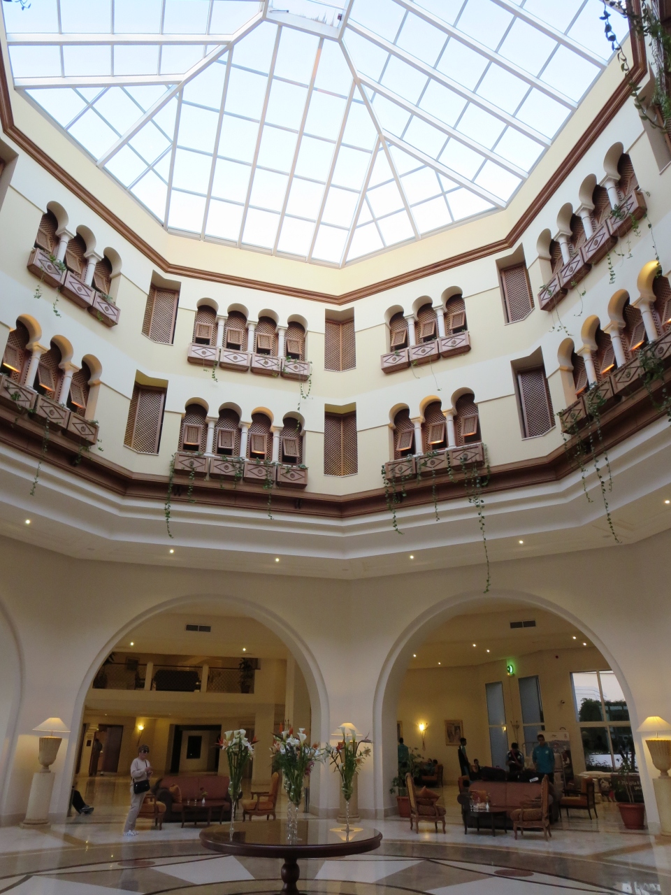 ツアーでの利用。吹き抜けの立派なロビーのホテルです。