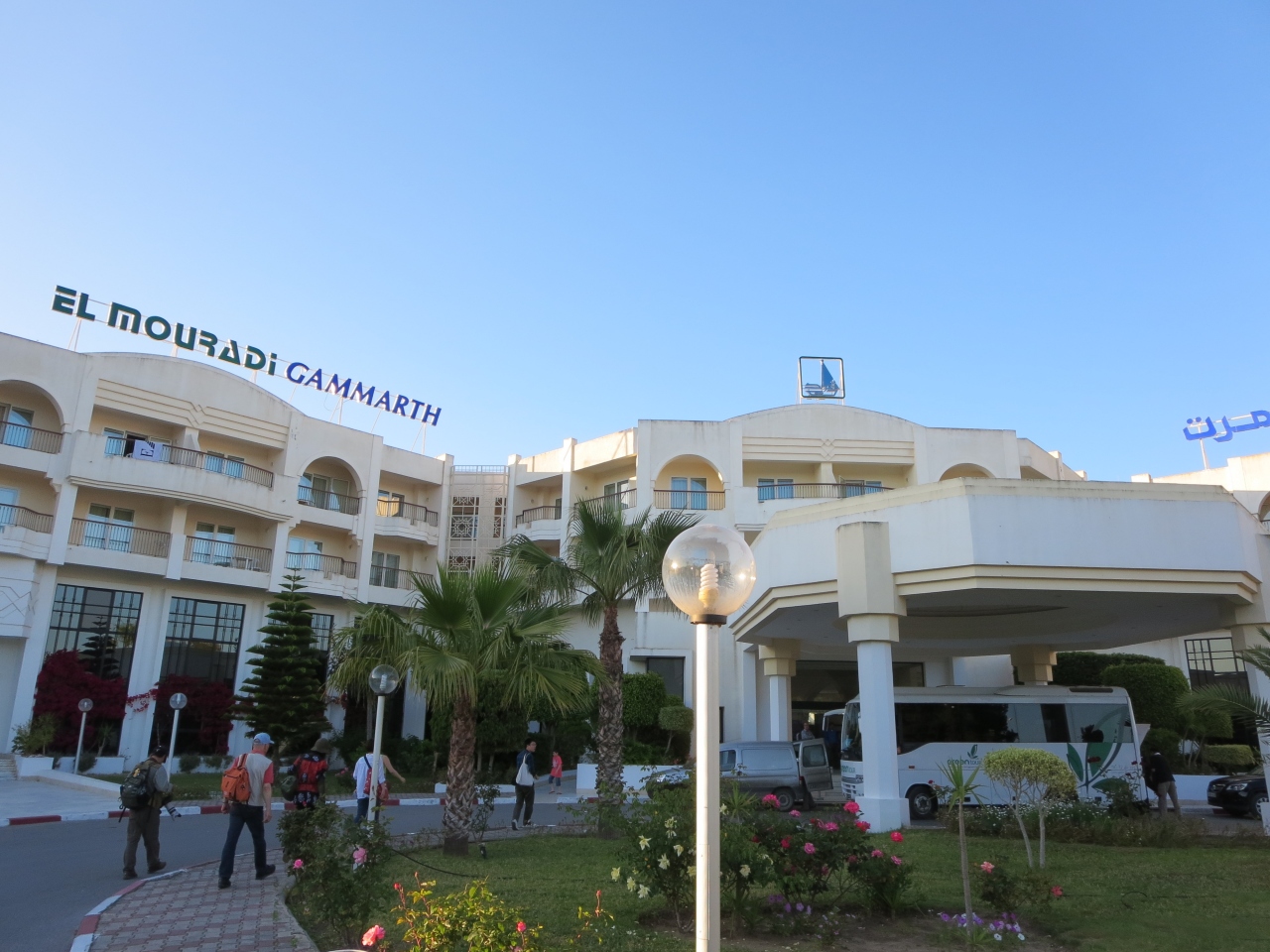 ツアーでの利用。大型のリゾートホテルで宿泊客の国籍も様々なインターナショナルなホテル。チュニジアのホテルは中央にプールを有し、周りに低層の客室がぐるっと取り囲んだタイプの作りです。ロビーを出て、客室に行くには中央のプールに出ていくのが迷わず行ける唯一の方法。建屋内で移動しようとすると必ず迷子になる複雑な造りでした。