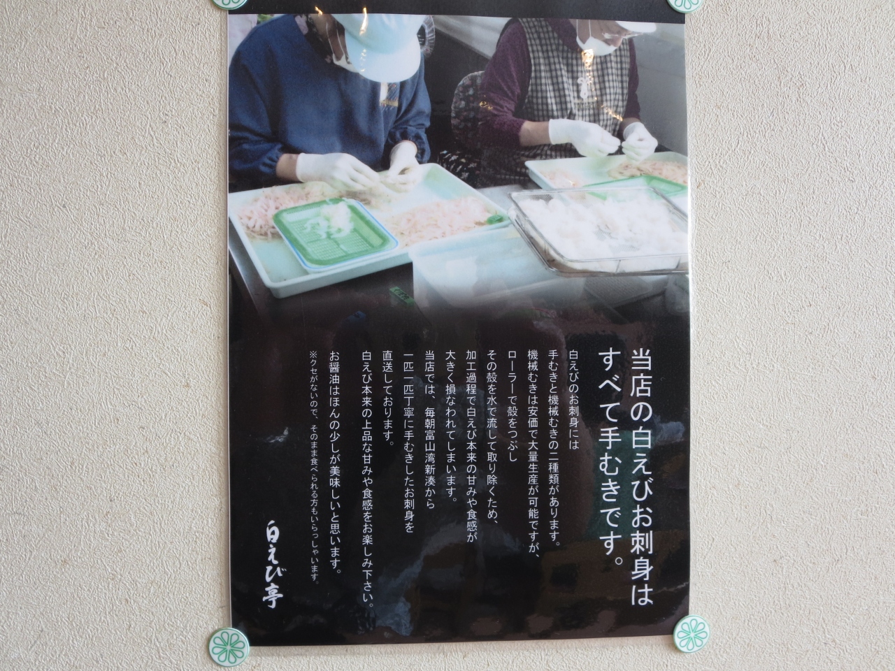 なお、こちらの白えびは食感とうまみを損なわないよう、すべて手剥きだそうです。殻ごと揚げるかき揚げ丼が1000円くらいなのと比較して、割高なのも納得できました。- 旅行時期