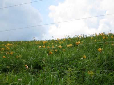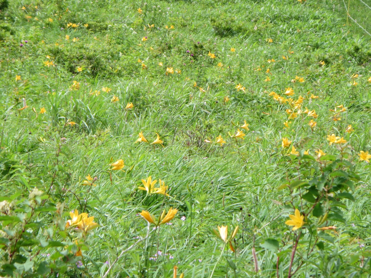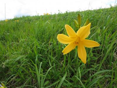 - ニッコウキスゲの黄色と新緑がなんともうつくしかった。