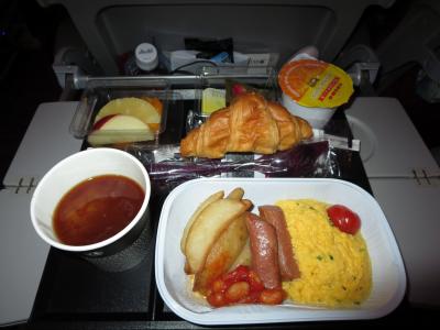 - 割と美味しい機内食。特に、往路のあんみつが意外にも好評価!