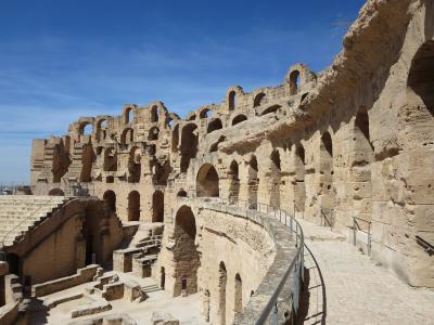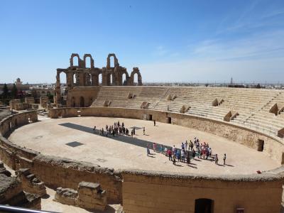 ツアーで訪れたので交通や入場料は不明です。まず、バスに乗っているときから、進行方向の正面に見える円形闘技場の姿にまず感動!!中に入って同様に、その保存状況にも感動しました。遺跡の上の方にものぼれるので、上から眺めるアリーナも、一望できるエルジェムの街並も素晴らしいです!!人が少ないのもポイントで、所々で遺跡を独り占めできます。人が写らず撮れた写真がいっぱいありました。