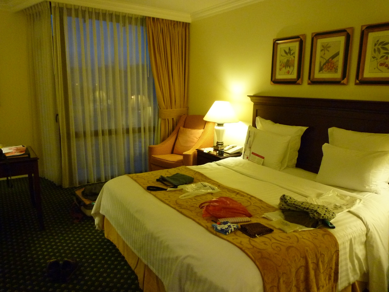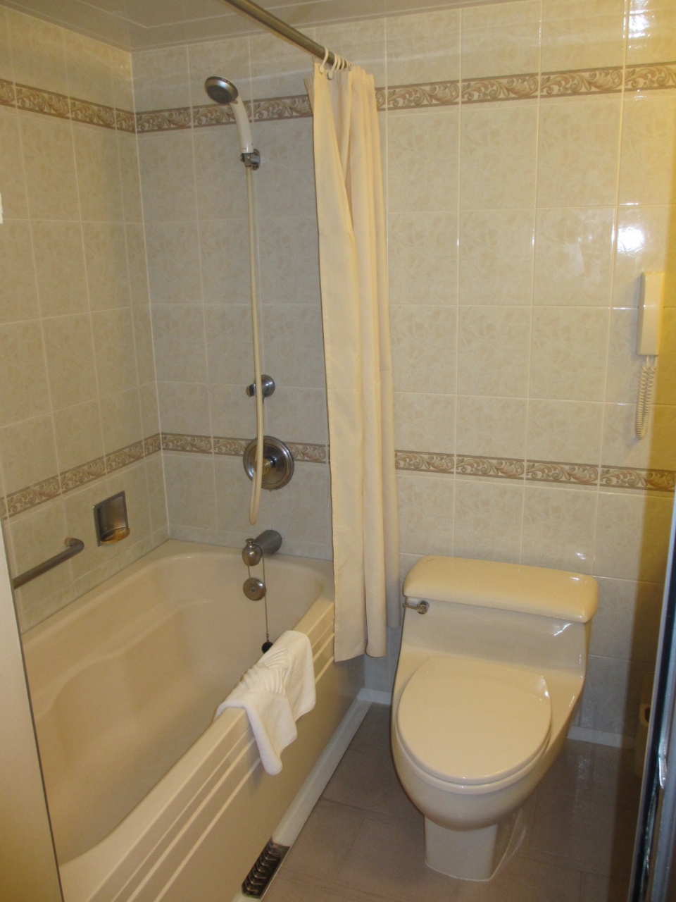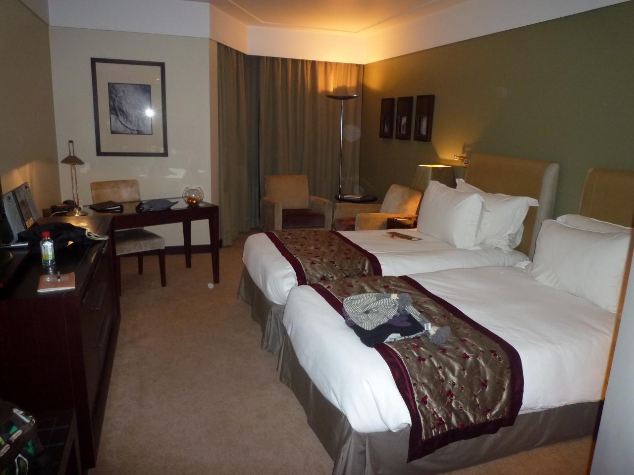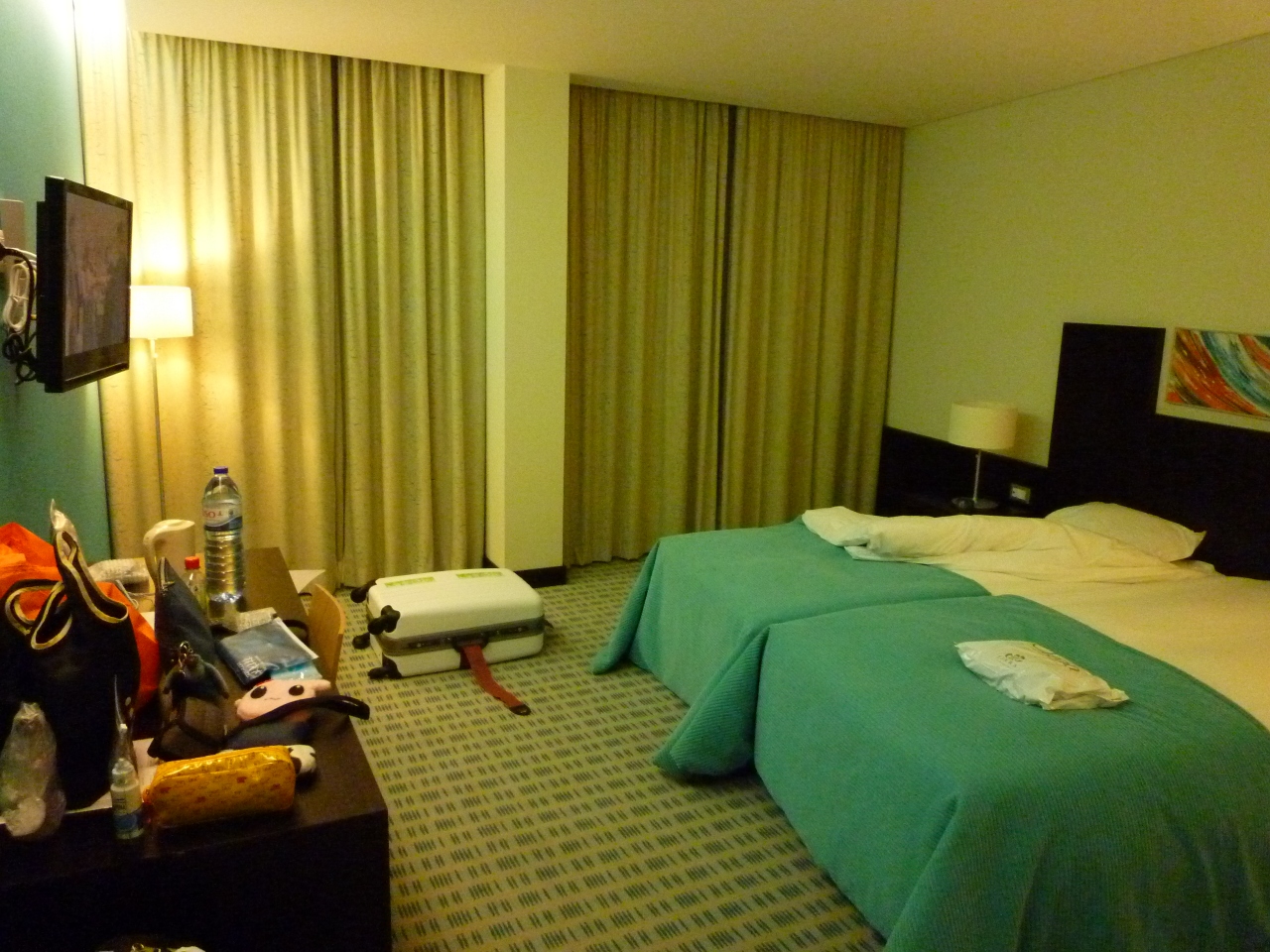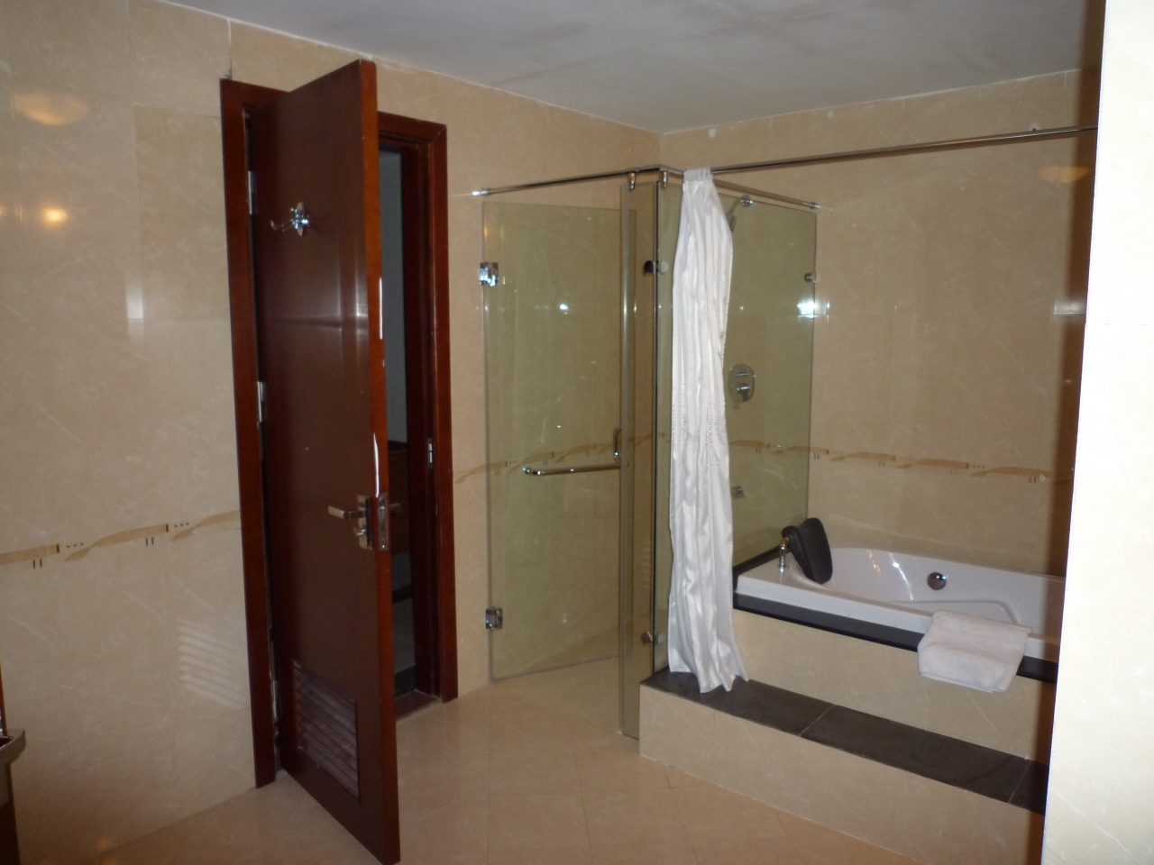 部屋は広くてバスタブ付、アメニティーも充実しておりとっても快適なホテルでした。体重計がバスルームにあったのにはびっくりですが、荷物の重さを量るのには重宝しました。バスローブ付。ただし、周りには他のホテルがあるだけで何もあませんでした。