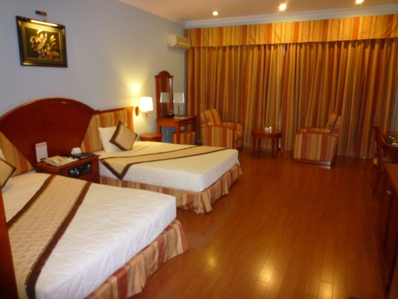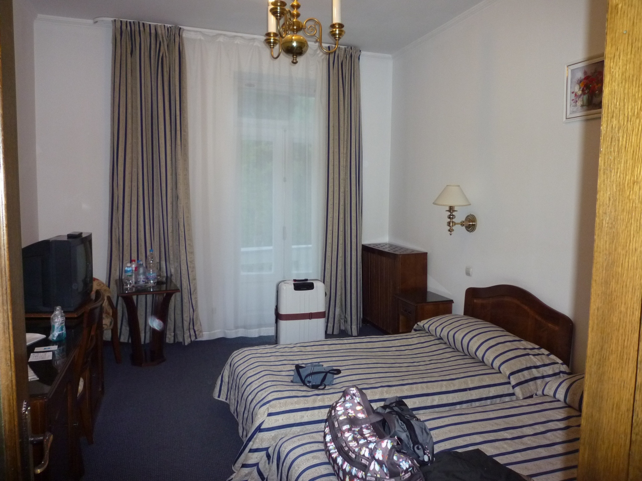 5年前のツアーでも同じホテルだったので、日本のツアー客がよく利用するホテルのようです。中心地からは離れていますが、戦勝記念広場の前に位置し、徒歩圏内にスーパーやショッピングモールもあるのでそれなりの立地だと思います。郵便局もスーパーの横にありました。1館2館とあり、通路でつながっていますが離れているので1館のほうにある売店やお土産物屋へ行くのには2館の宿泊だとちょっと移動が面倒でした。2館には売店は何もありません。客室は5年前はそんなに感じませんでしたが、現在はさすがに古くなっているようですした。お湯の出は特に問題ありませんでした。ドライヤーはクローゼットの中にあったため、わからず使えずじまい。しかたなく持参のドライヤーを使用しましたが、コンセントが少ないうえとても使いにくい場所にあるので非常に使いにくかった。ポットはありませんでした。朝食はあまりおいしくありませんでした。中国人が多く非常にマナーが悪かったです。
