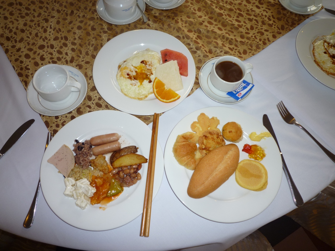 香港・マカオはホテル代が高い!ツアーの一人参加で4泊分の追加代金が¥40,000・・・日割りにすると今まで利用した中で一番高額なホテルではないかと思われます。確かに結構高級そうな雰囲気はありました。こちらのホテルは中心部からは離れていますが、駅と通路と屋根付きのエスカレーターでほぼ直結しているので電車を使えばそれほど不便ではないかと思われます。駅には小さいですがコンビニと薬膳らしきデザートなどのチェーン店がありましたので、ちょっとした買い物なら事足ります。香港のコンビニはいろんな種類のパンがあるので結構重宝しました。部屋も広くて清潔、ポットもあり使いやすかったです。なお、朝食は値段の関係かと思いますが、利用してないとのでわかりません。