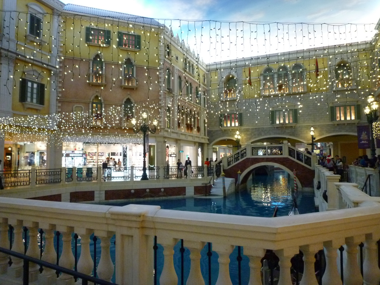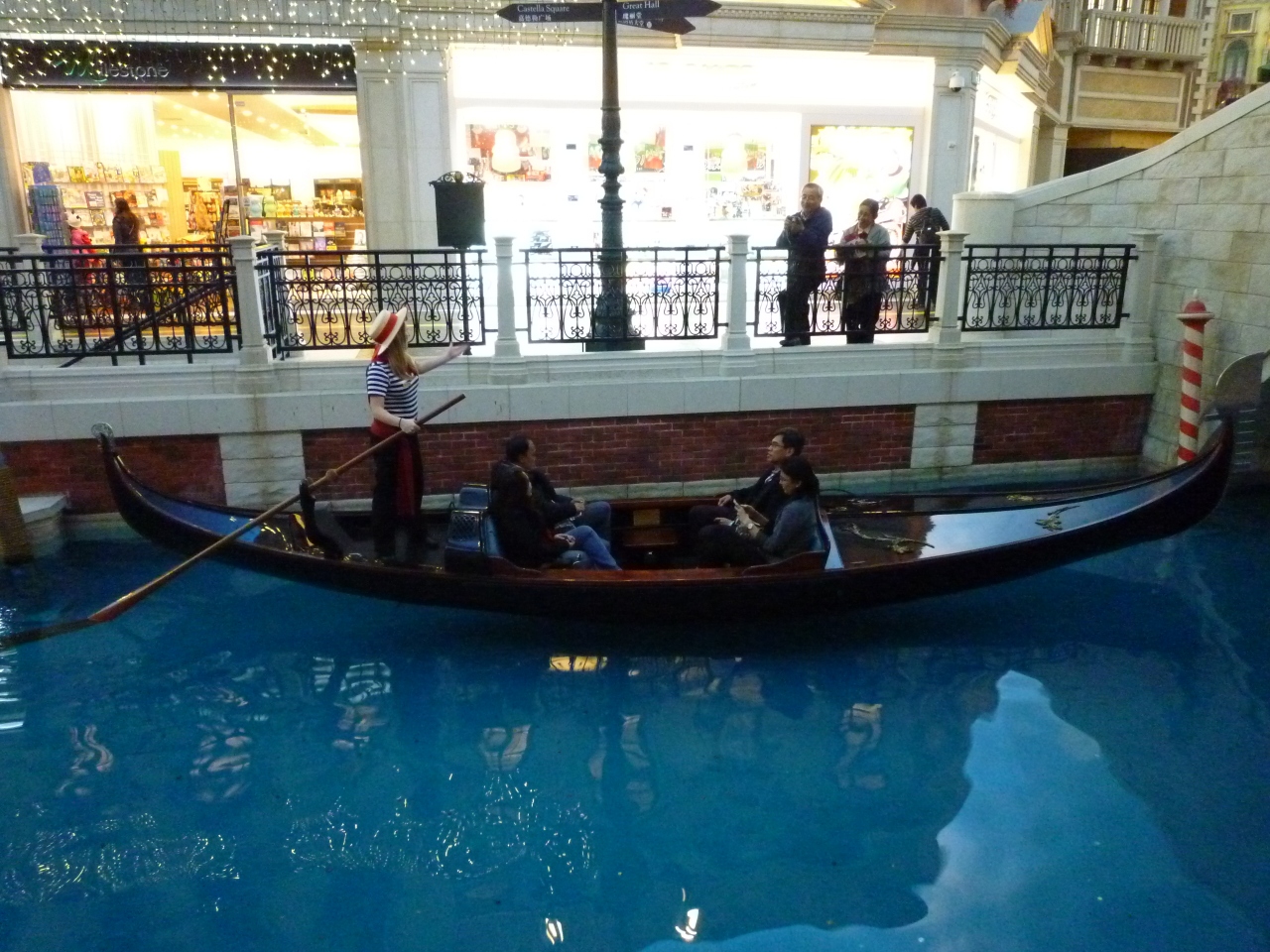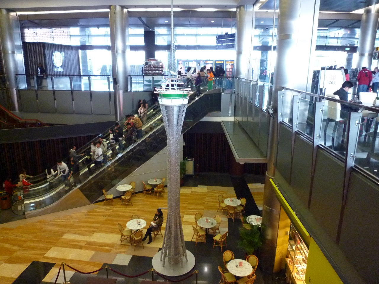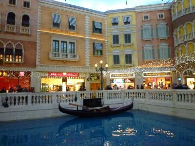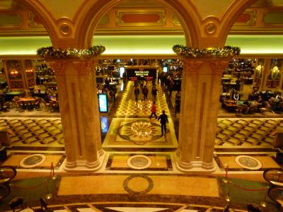お断りしておきますが、宿泊はしていません。カジノとショッピングモールの見学で利用しました。とにかく、夜でも青空の天井がなんとも人の感覚を狂わせる異質な空間です。ベネチアに行ったことがないので比較のしようがないのですが、きっと近い雰囲気は出ているんでしょう。とにかく広いらしく、宿泊の人の中にはホテル内で迷子になったり、部屋からフロントまで移動するのに何十分もかかったりなど良い話ばかりではないうわさを聞くと、時間の自由がきく個人旅行ならともかく、日程の詰まったツアーには向かなそう・・・宿泊しないでよかったかも・・・と自分に言い聞かせることにしました。でもきっと豪華なんでしょうね~。