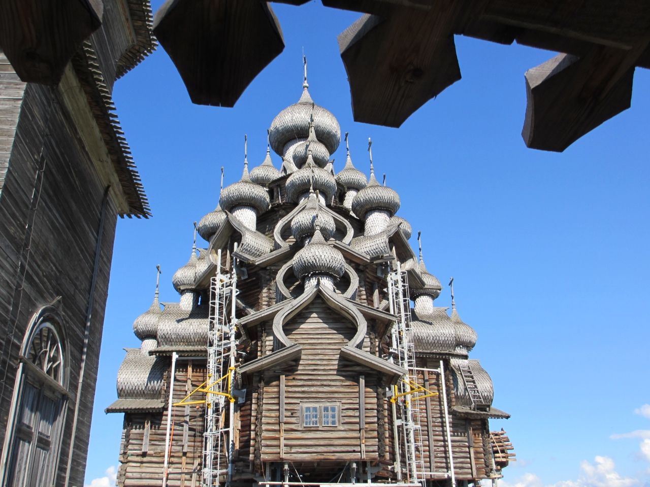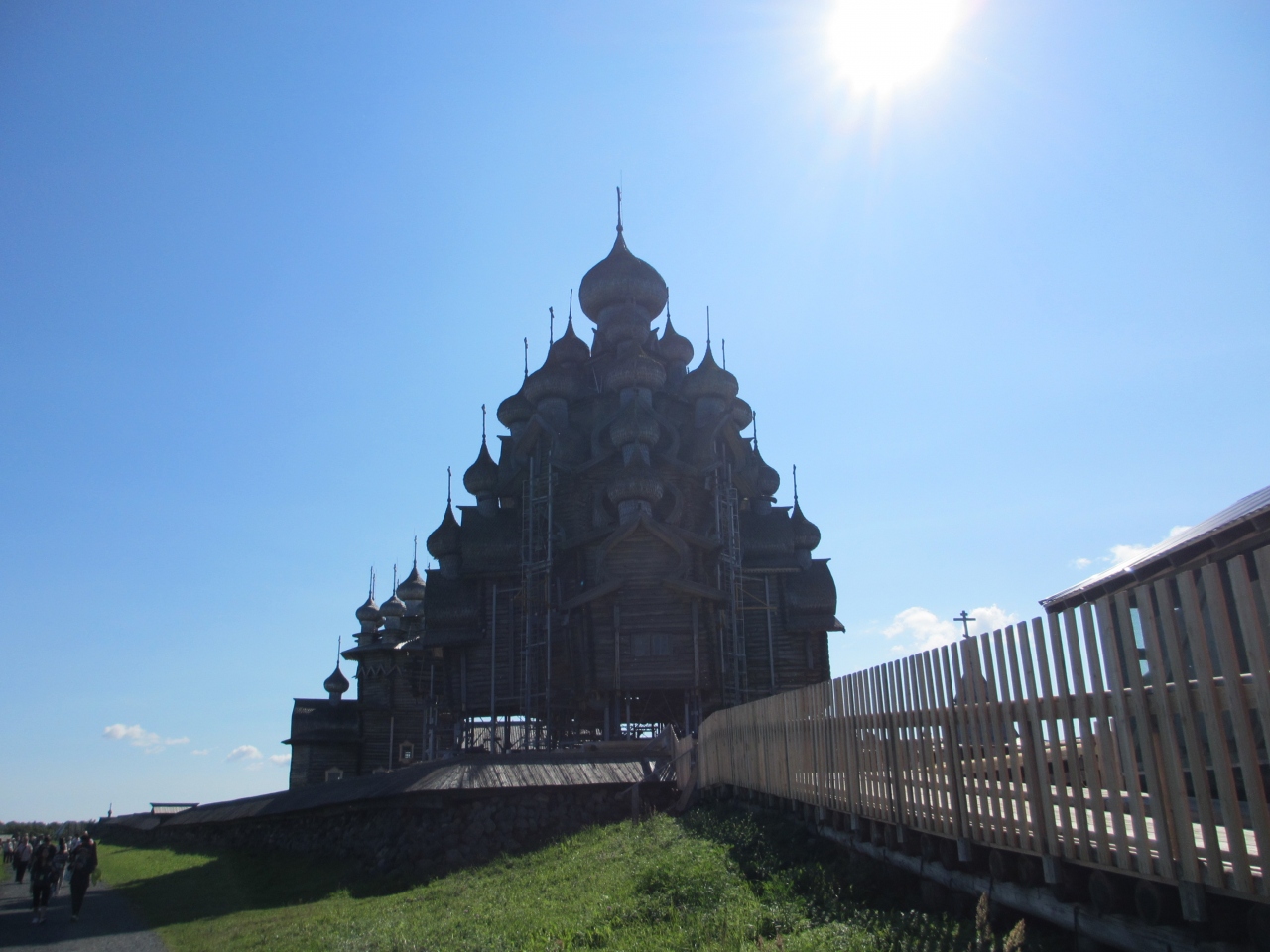 ここにたどり着くのにバスで6時間、ペトロザボーツクに1泊して水中翼船で1時間半。それでもいった価値はありました。お天気に恵まれ青空の下に銀色に輝く玉ねぎ屋根の教会群を見たときは涙か出そうなほど感動!湖から見る姿、島のあらゆる方向から見る姿、どこから見ても美しい教会群。野鳥や水鳥がさえずり緑豊かなのどかな島の環境も相まって、心癒される素晴らしい時間を過ごせました。島を離れるのが名残惜しいほど、こんな感動は久々です。本当に素晴らしい造形美です。なお島には宿泊施設はないので、乗った船で行きに乗船カードを首にかけられ、同じ船に乗るときに返して必ず乗船したことが確認できるようなシステムになっていました。