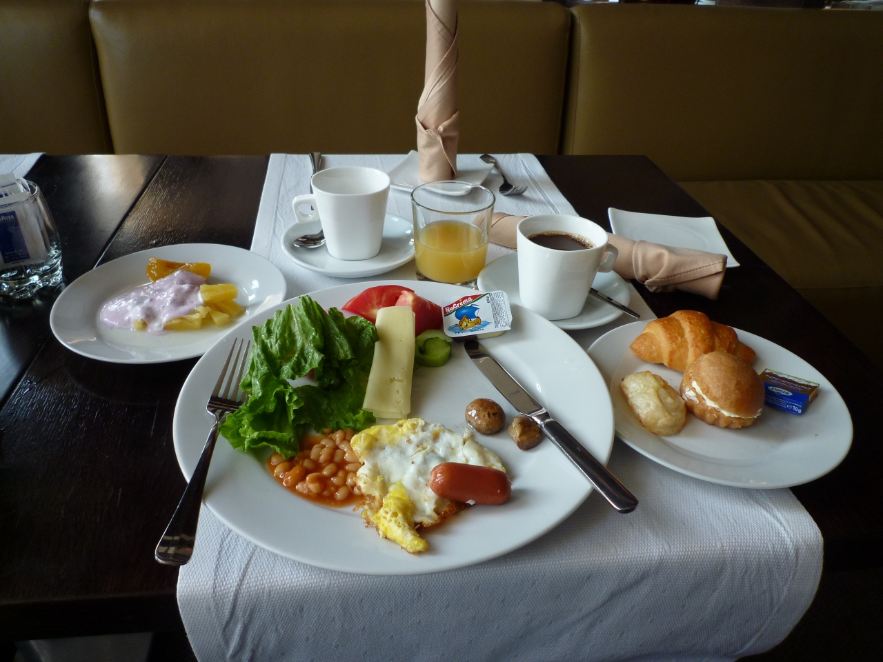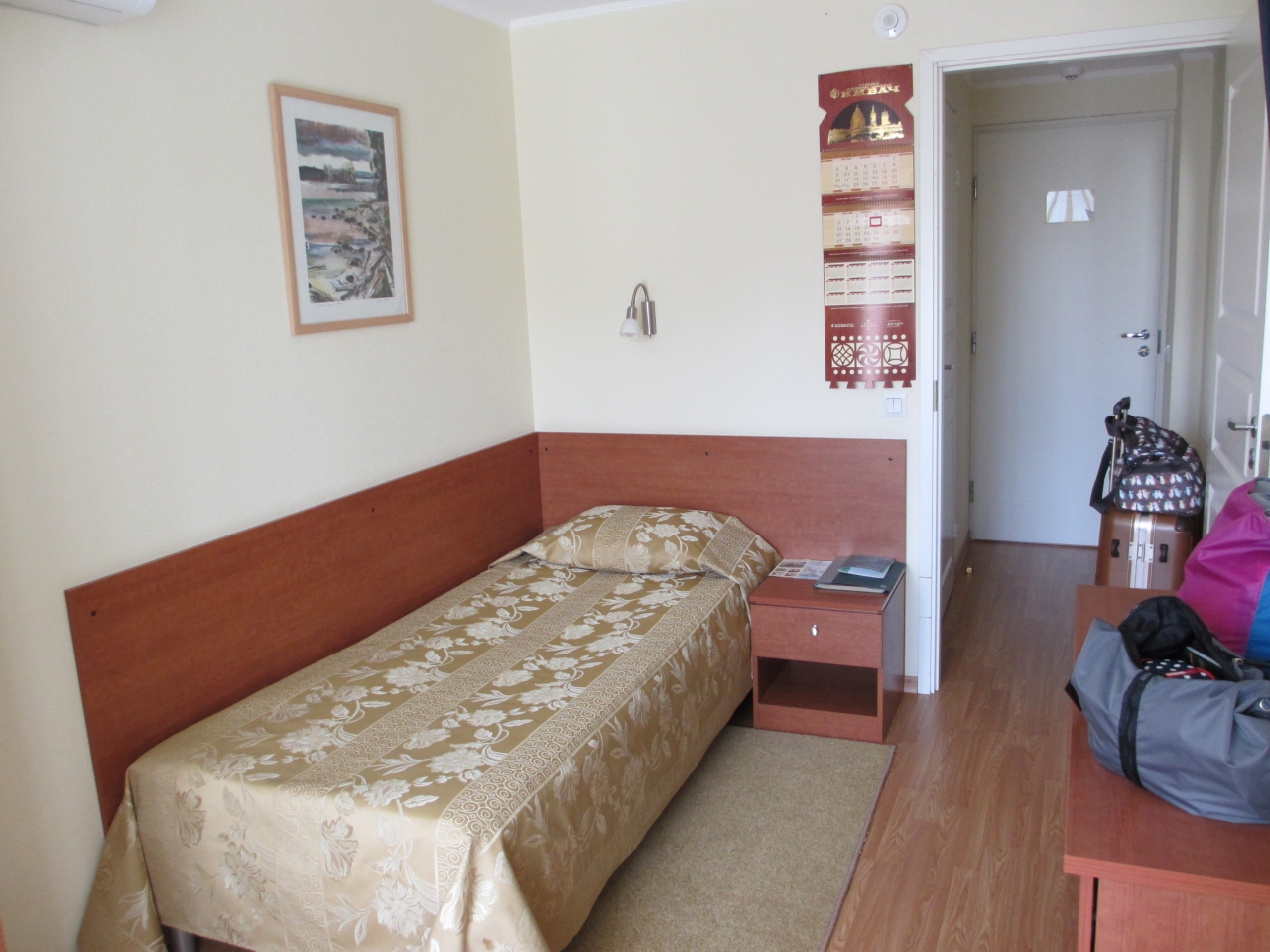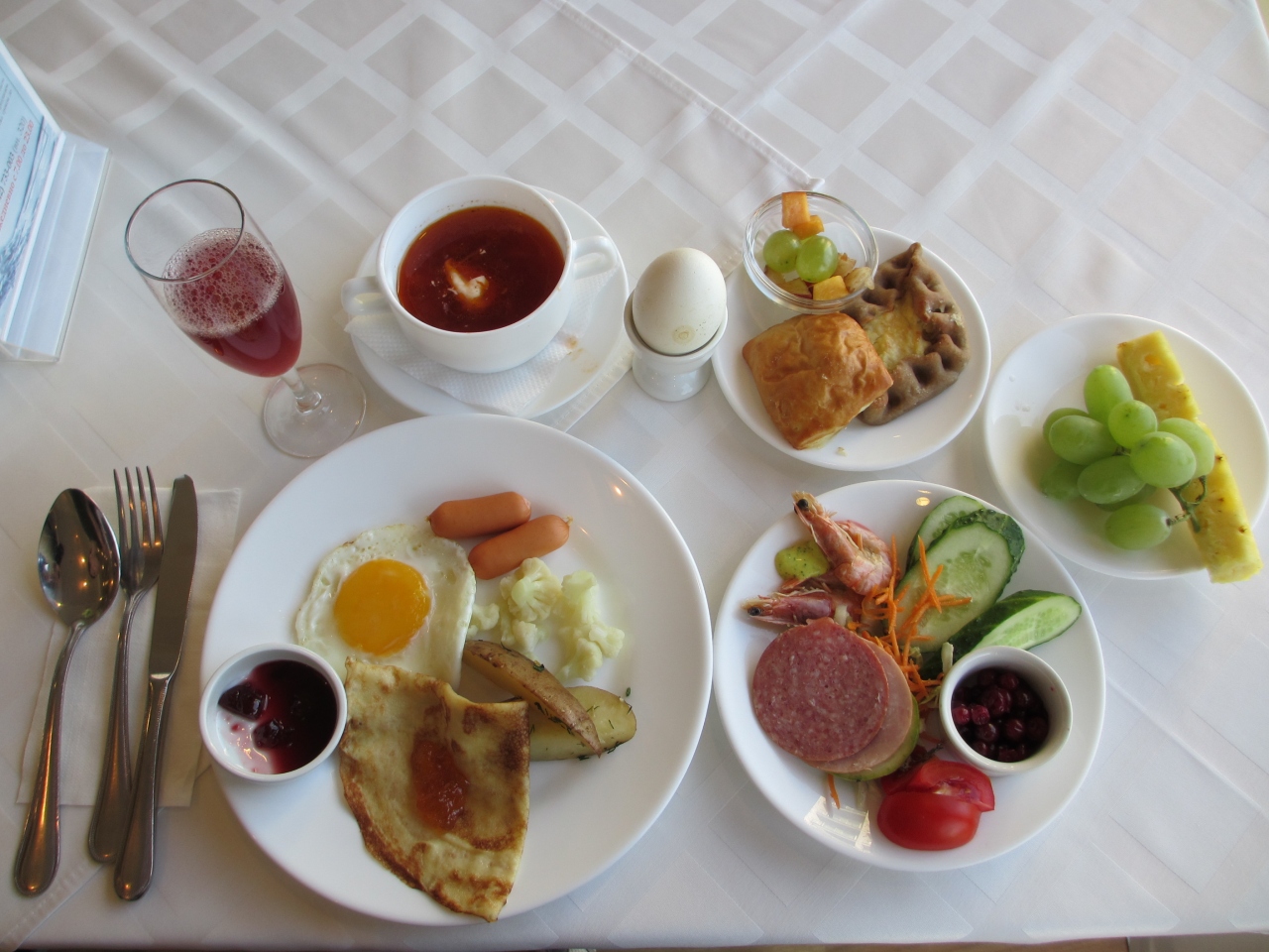 ツアーのホテルランクではスタンダードでしたが、一応4つ星ホテルでした。オネガ湖のすぐそばに立地し、部屋からは湖や渓流、白樺の森が見える自然豊かな環境です。そのせいか蚊も多かったですが。しかし、ちゃんと部屋に電気式の蚊取りマットが置いてありましたので問題ありません。SPAも併設しており、デトックスなどのできるエステも可能のようです。一番気に入ったのが朝食。種類も豊富ですが、朝からスパークリングワインが置いてあり優雅な朝食を満喫でします。観光客よりもロシアのビジネスマンが主な客層ようで、我々のグループ以外はほとんどビジネスマンらしき人たちでした。残念だったのが、City Mapがほしいといってもなかなかフロントの人が出したがらなかったこと。私は運よくもらえましたが、地図がないと街歩きもままならないのに…なぜ出し惜しみするかは不明です。地球の歩き方の地図が役立っていたようです。