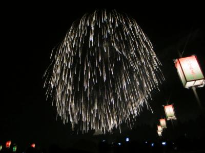 公共交通機関での移動が困難なため、越後三大花火の内、唯一行ったことがなかった「山の片貝」。距離的には遠くないのですが、車でしか行くことが困難たため今回バスツアーで初めて参加となりました。他の花火大会と違い、浅原神社に奉納する形で打ち上げられる花火。1つひとつに、供養や、厄落とし、祝い、などなど…人それぞれの思いの詰まったコメントともに打ち上げられる花火には感動すら覚えました。ただ・・桟敷席が畳2枚ほどの狭い区画に8名とのことで、非常に窮屈で体が痛く長時間(19:30~22:20)はきつかったかな。でも一見の価値あり☆☆☆行ってよかったです。尺玉連発や、世界最大の4尺玉花火は圧巻!でした。