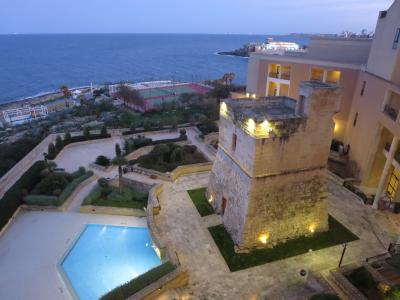 ツアーでの利用。一応、ランクは「デラックスクラス」とのことでした。セントジュリアン地区は町の中心部からは少しな離れていて、バレッタ観光等には少し不便な立地のようです。その代り、客室からの眺望は最高!!静かな環境でプール&スパも併設されているのでリゾート感は満喫できます。
