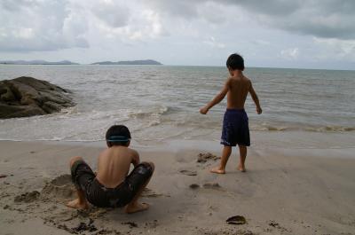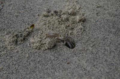 ビーチには、こんなカニがいっぱいいます。子供は、喜んで捕まえようと遊ん...