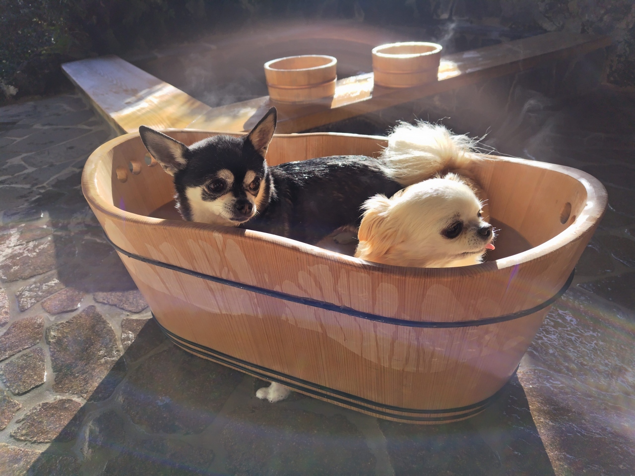 ワンコ用の湯船も用意されてるからワンコも温泉に入れる。- 旅行時期
