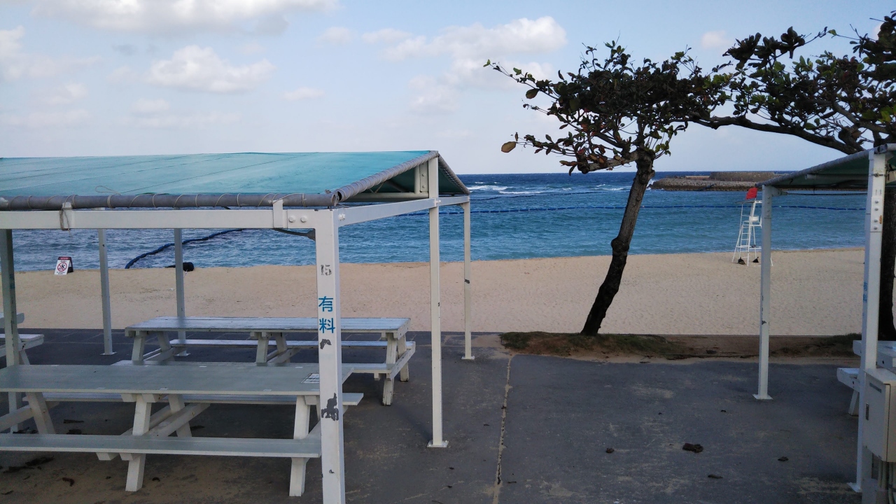 有料だけどコンクリのところに屋根付きのテーブル席があり、砂まみれにならずに楽しめそう。- 旅行時期