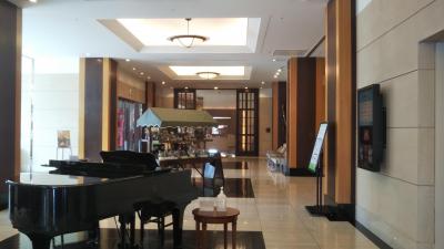 KUROBUTAレンタカー富山駅店でレンタカーを予約しており、その貸出場所がオークスカナルパークホテル富山。駅の北口から5分程度のアクセス良。外からの見た目ではビジネスホテルっぽく見えたけど、ロビーは広く明るくグランドビアノとかあるし、フロントスタッフの身なりや対応がスマート。この日は閑散としてたけど普段は結婚式とかで賑わってるんだろうな。