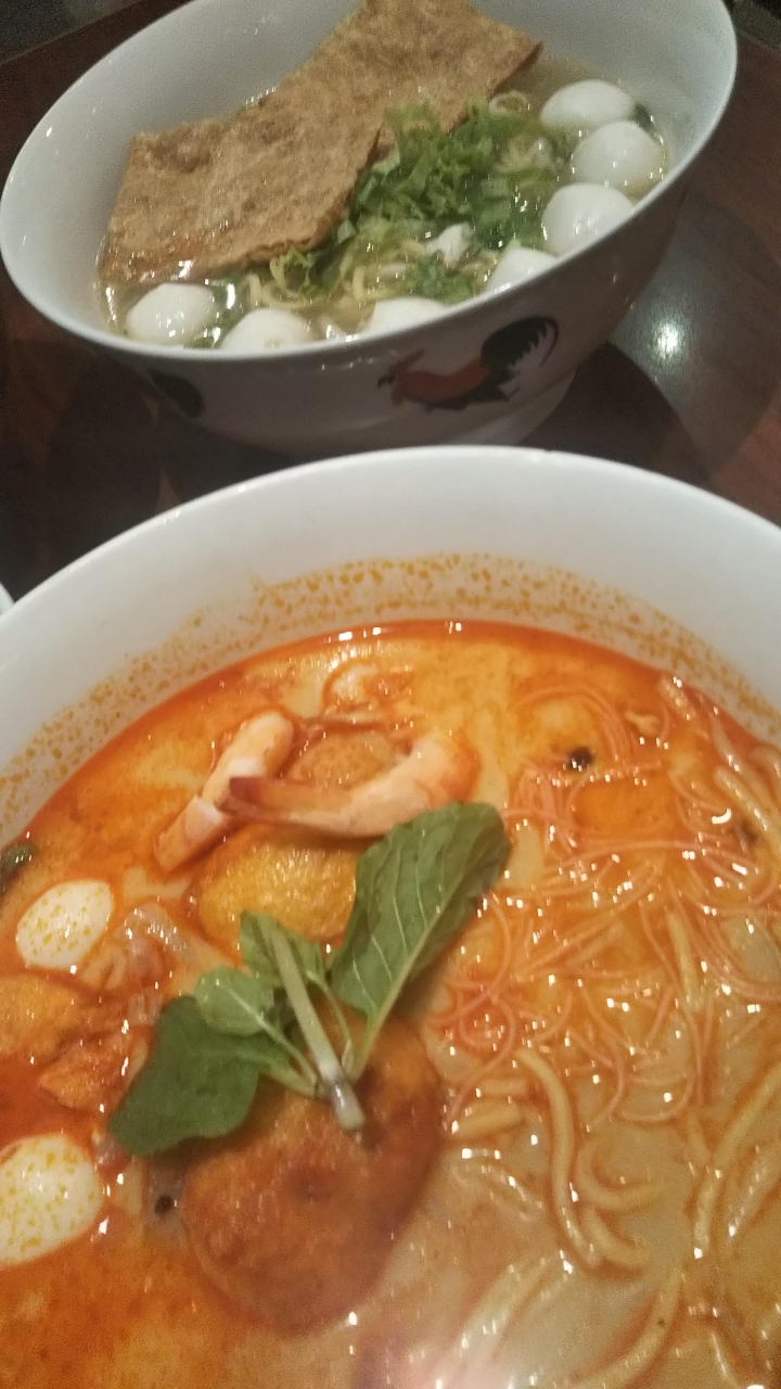 頼んだのはラクサとフィッシュボール。