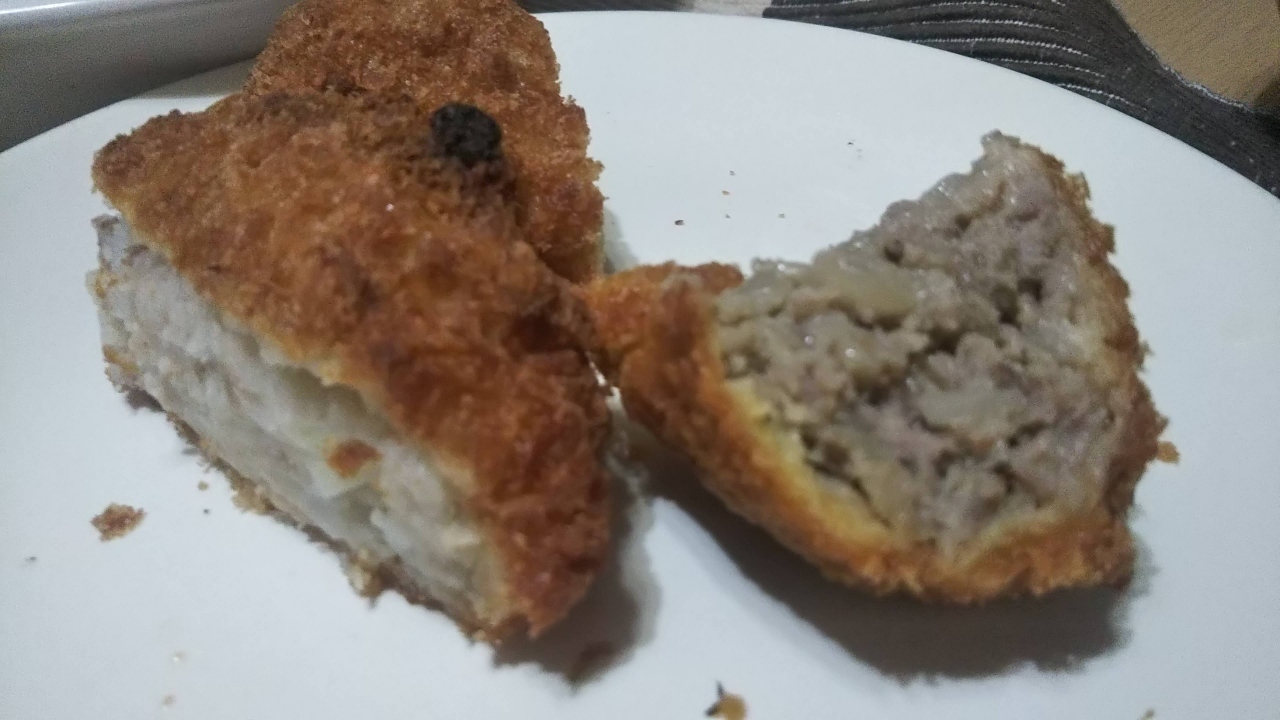 「メンチがめちゃウマで、吉祥寺では大行列なのに銀座はそれほど並ばない」と聞いたからと家族が近くを通った際にメンチとコロッケを買ってきてくれた。