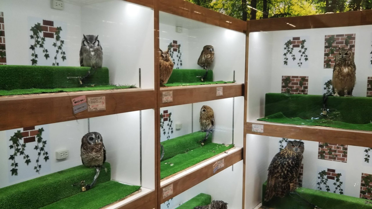 「まだ慣れていないから脅かさないで」というような張り紙があるとおり、一部のフクロウがビクビクしててかわいそうだった。- 旅行時期