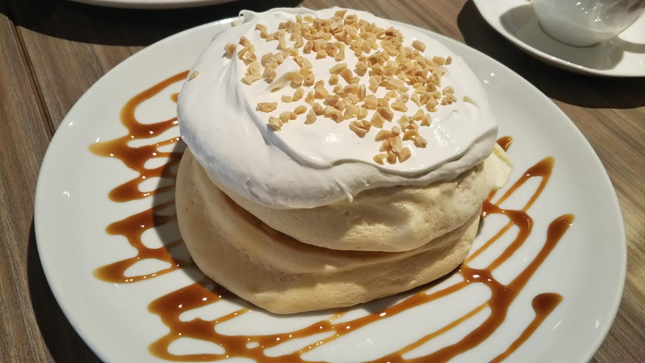 犬同伴可能なテラス席があることと、リコッタパンケーキがおいしそうってことで、三井アウトレットパーク南大沢に行くついでにモーニングで利用。