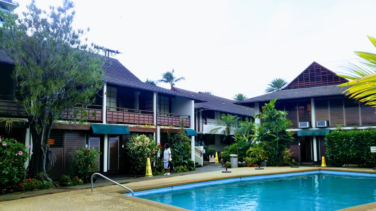 ワイキキ内の高層ホテル群に囲まれる2階建てのゆったりとした異空間。