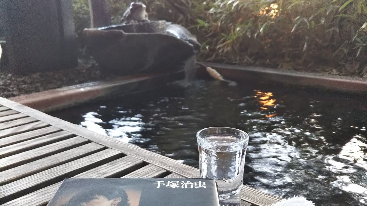 ペット同伴可能だし、本の在庫が結構あるし、フロント脇のラウンジには、飴玉のほか、焼酎とコーヒーのサービスがあり、それら本とドリンクをお供に、入口の足湯でゆったりできるんだけど、足湯にはドクターフィッシュがいて、これがお気に入り。