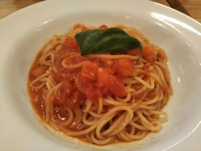 ここのパスタはモッチモチでアツアツのソースと提供されて超おいしい~。