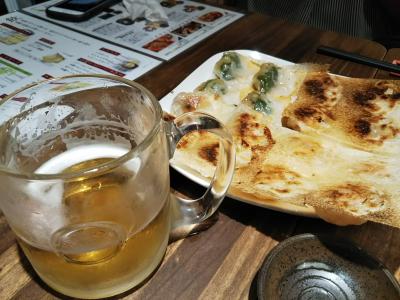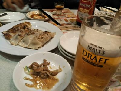 餃子&ビールがしたくなり、新入社員があふれるから混雑必至なものの2人なら大丈夫でしょと高をくくってたけど、2軒に断られ続ける。