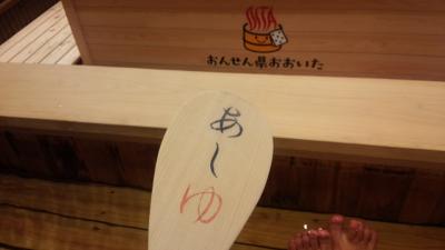 きれいな足湯でモニターに映る大分PRビデオの猿の冒険が面白くて、見入っている間に足がポカポカして気持ちよかった。- 旅行時期